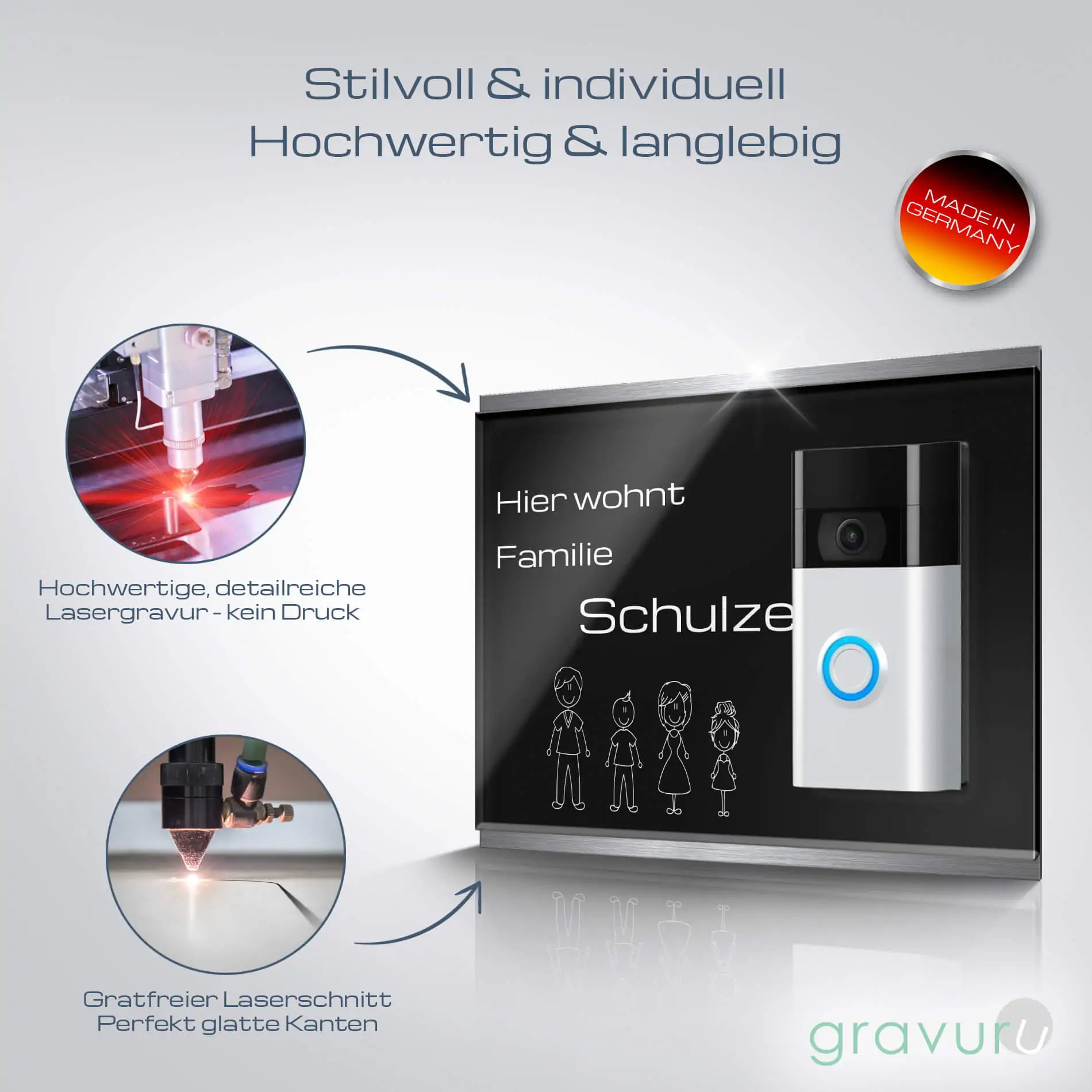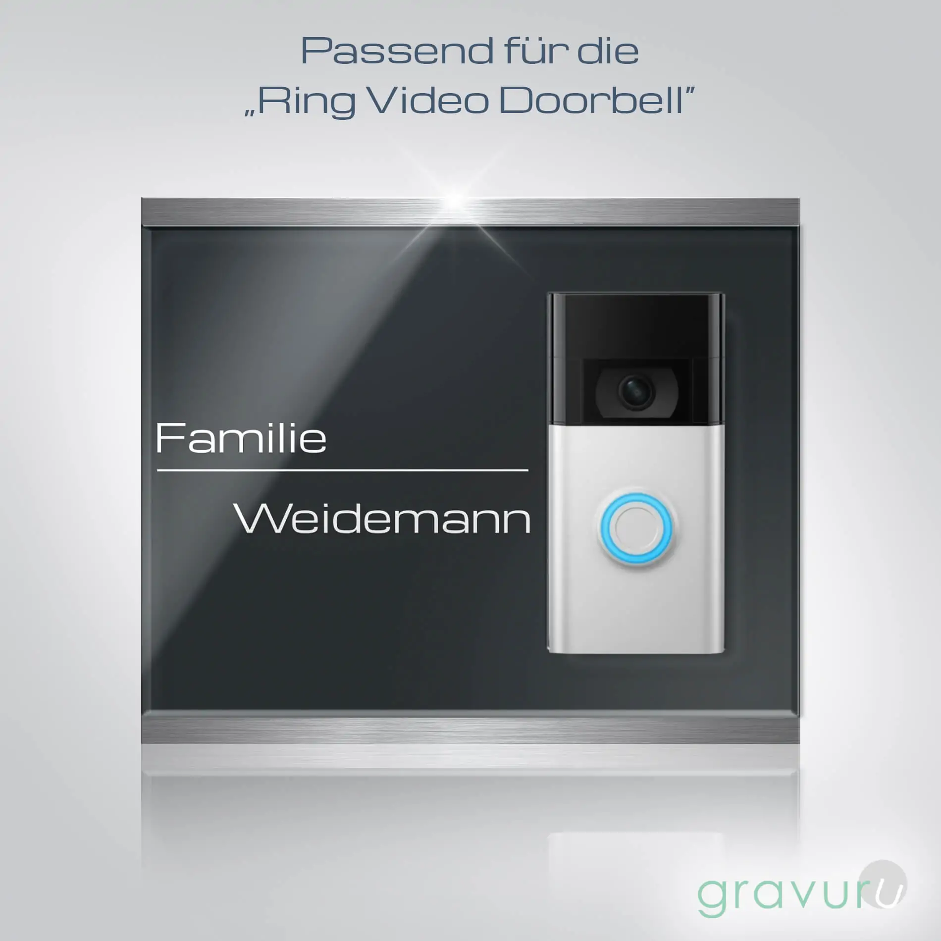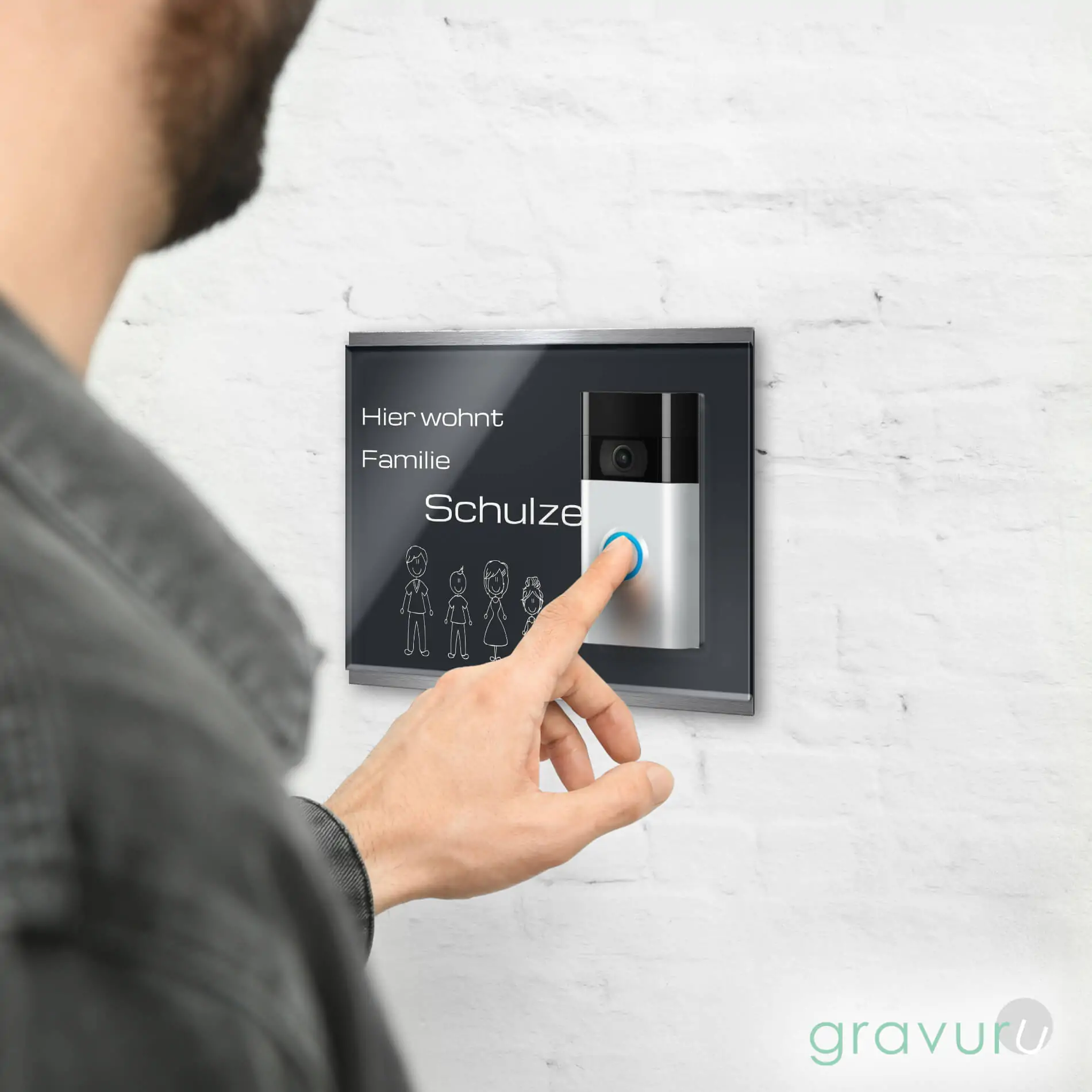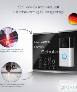 Ring Plus Videoklingel Schild aus Acrylglas mit Gravur