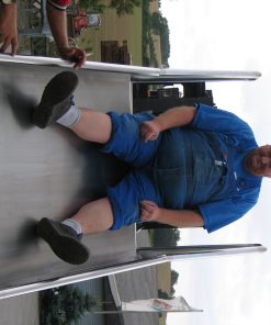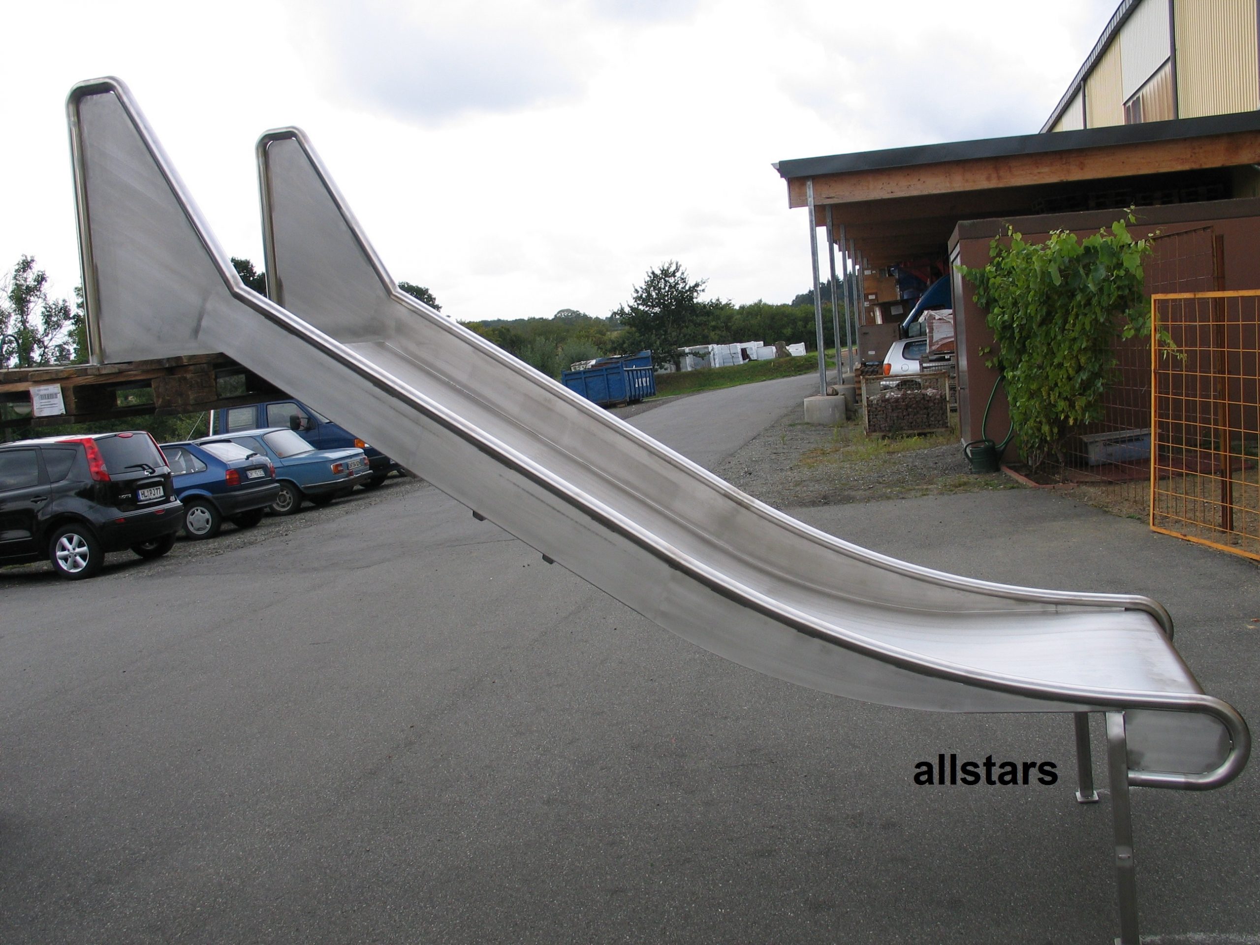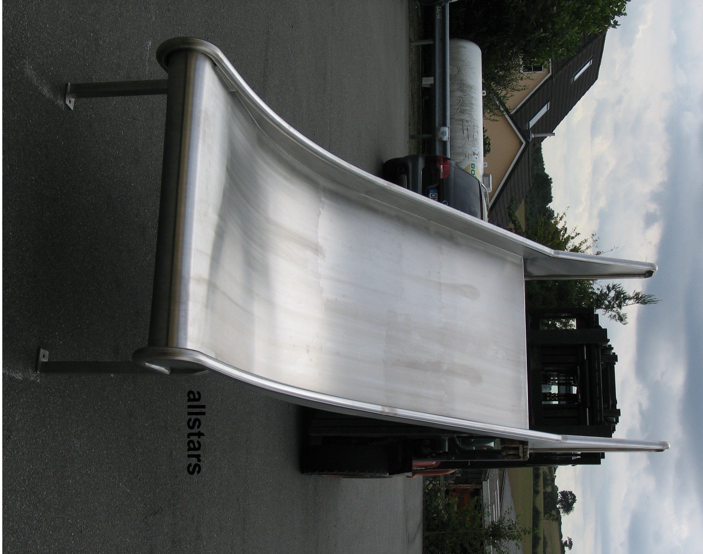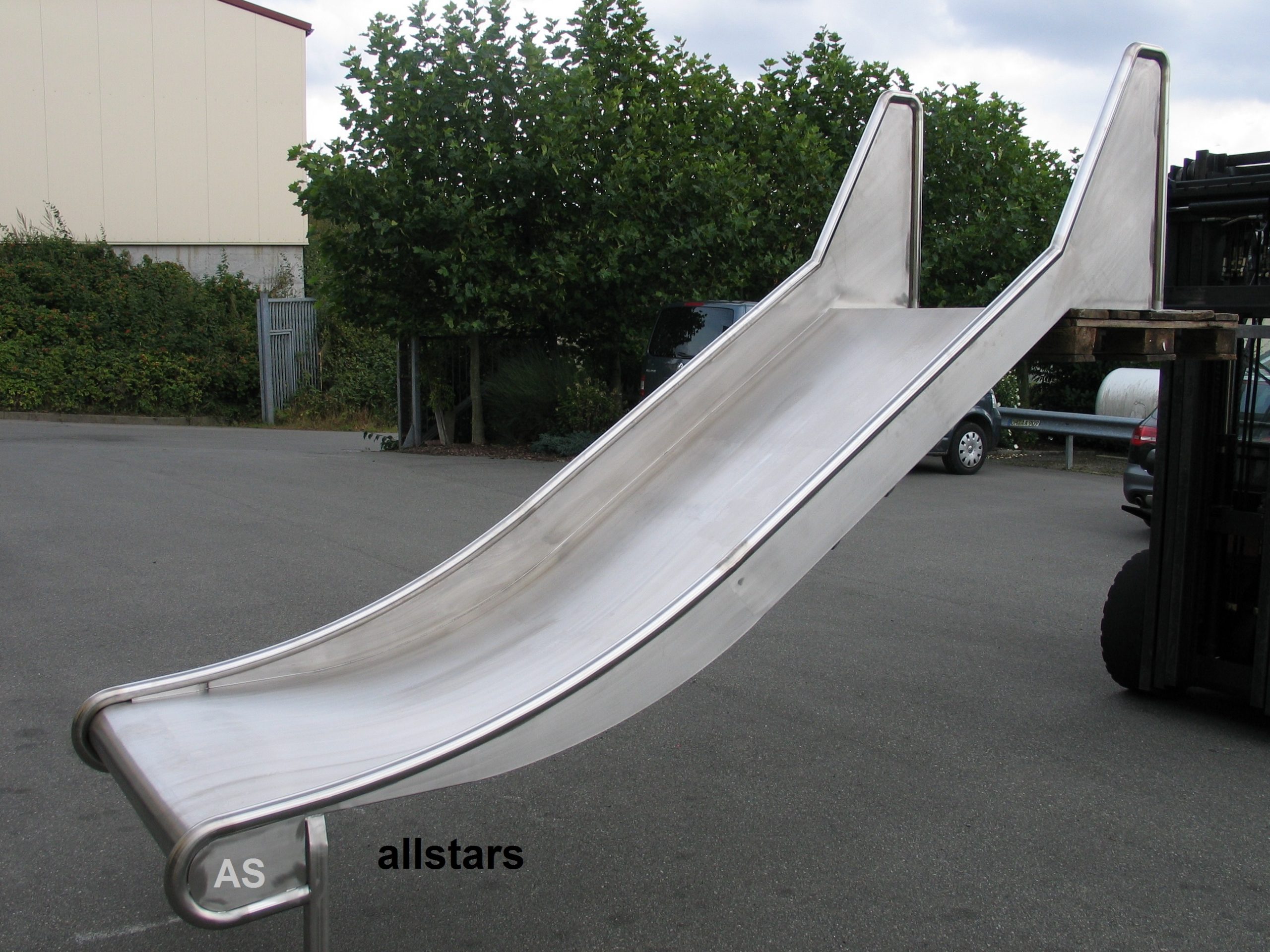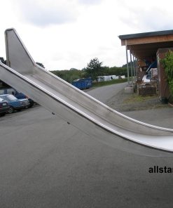 Die hochwertige überbreite Rutsche aus Volledelstahl ist sehr witterungsbeständig und langlebig.