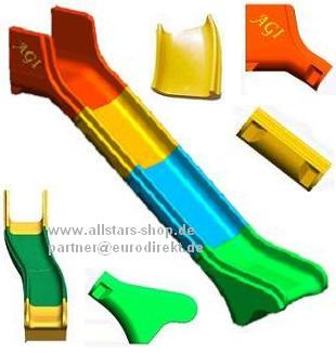 Mit diesem Anflansch- und Turmrutschen-System erwerben Sie eine multifunktionale Modul-Rutsche, die es Ihnen ermöglicht, Ihre Hangrutsche in x-beliebiger Länge zu konstruieren. Bis zu einer Podesthöhe von 2,40 m können Sie sogar Kurven einbauen. Die Module liefern wir in den Farben rot, grün, gelb und blau. Bitte bei Auftragserteilung die Farbwünsche angeben.