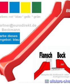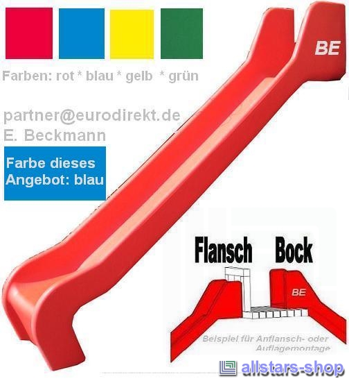 Die PE-Rutsche mit einer Ausladung von 1,94 m ist eine hochwertige und äußerst strapazierfähige Rutsche, die sowohl für den öffentlichen Bereich, als auch für den privaten Gebrauch konstruiert ist. Die Rutsche mit hohen Ohren ist geeignet zum Anbau an Podeste, Spielhäuser und Klettergestelle mit einer Podesthöhe von 1,20 m. Mit zwei Befestigungsmöglichkeiten ist diese Rutsche flexibel einsetzbar. Entweder wird sie von oben auf die Plattform eines Turmes geschraubt oder seitlich an einen Turm angeflanscht. Die Rutsche ist mit der Farbe blau durchgefärbt und sehr witterungsbeständig.