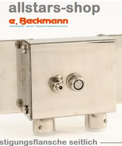 - Flansch: ca. 220 x 100 mm, mit Bohrungen für Schrauben