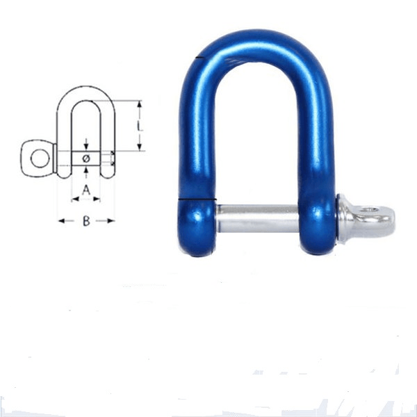 Schäkel blau, mit Drehverschluss (Gewinde) und Loch-Ø 12 mm