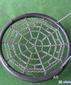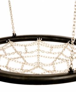 Die hochwertige Ringschaukel, aufgehängt in dem preiswerten Doppel-Schaukelgestell, mit schwarzem Gummiring und Edelstahlkettennetz ist für mehrere Kinder konstruiert. Sie ist äußerst strapazierfähig und witterungsresistent und insbesondere für den öffentlichen Bereich hergestellt. Der mit Spezial-Gummi beschichtete Stahlring ist ein äußerst effektiver Unfallschutz und macht die Vogelnest-Schaukel hierdurch zu einer idealen Nestschaukel für öffentliche Spielplätze. Das Edelstahl-Kettennetz und die Patentierte© Gummilippe zur Stoßdämpfung verstärkt die Einsatzmöglichkeit um ein Vielfaches. Auch die Aufhängeseile sind aus rostfreiem Edelstahl gefertigt. Der HIC-Test hat nur einen Aufschlagwert von 60G ergeben. Die Schaukel ist vorgesehen für eine Aufhängehöhe von 2,50 m. Andere Aufhängehöhen auf Anfrage.