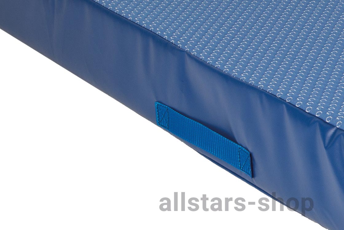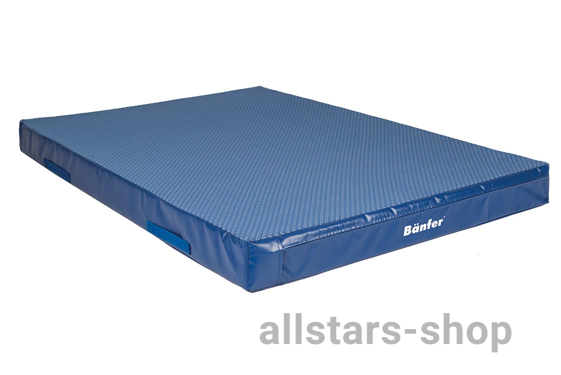 Die Bänfer Schiebematte „Exklusiv“ ist für das Tramplinspringen konzipiert. Der Planenstoff-Bezug inkl hautfreundlichem Elastikstoff auf der Oberseite ist sehr robust. Die Matte ist mit 4 Tragegriffen ausgestattet.