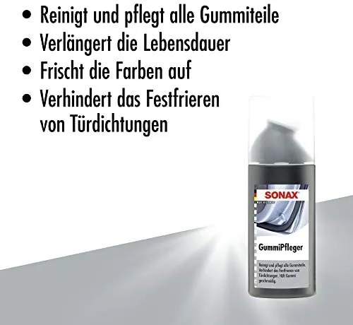 Reinigt und pflegt alle Gummiteile am Auto und hält sie elastisch. Verlängert die Lebensdauer des Gummis und frischt die Farben auf. Verhindert im Winter das Festfrieren von Türdichtungen. Auch Reifen und Fussmatten lassen sich mühelos reinigen und erhalten ihren ursprünglichen Glanz zurück. Erhältlich auch mit praktischem Schwammapplikator.