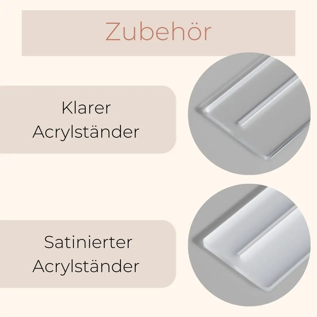 Die Wandbilder im Song Cover Design eignen sich perfekt um Deinen eigenen vier Wänden einen persönlichen und modernen Touch zu verleihen. Natürlich stellen sie auch eine tolle Geschenkidee zum Valentinstag oder zum nächsten Geburtstag dar. Mache Deinem Partner oder Deiner besten Freundin eine ganz besondere Freude mit diesem dekorativen Acrylglas Bild im Musik Cover Style. Wähle zwischen einer praktischen Wandhalterung zum Aufhängen oder einem stylischen LED Holz Ständer zum Aufstellen. Wahlweise kannst Du auch einen dezenteren Holz oder Acryl Ständer ohne Beleuchtung aussuchen. So kommt Deine personalisierte Foto Musiktafel noch besser zur Geltung.