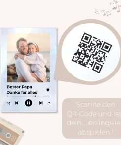 Auf dem Song Cover Acrylglasbild kannst Du nicht nur Dein Lieblingsfoto sondern auch Deinen Lieblingssong oder eine andere persönliche Widmung verewigen. Zusätzlich hast Du die Wahl zwischen vielen verschiedenen Farben und Designs. Abrunden kannst Du Dein Spotify Glas mit einem individuellen QR-Code, der auf Deinen Lieblingssong verweist und diesen beim Einscannen sofort abspielt. Personalisiere die Spotify Tafel indem Du im Konfigurator ein Foto Deiner Wahl hochlädst und einen Musik-Titel & Interpreten, Namen oder einen anderen Wunsch-Text in die Eingabefelder einträgst.