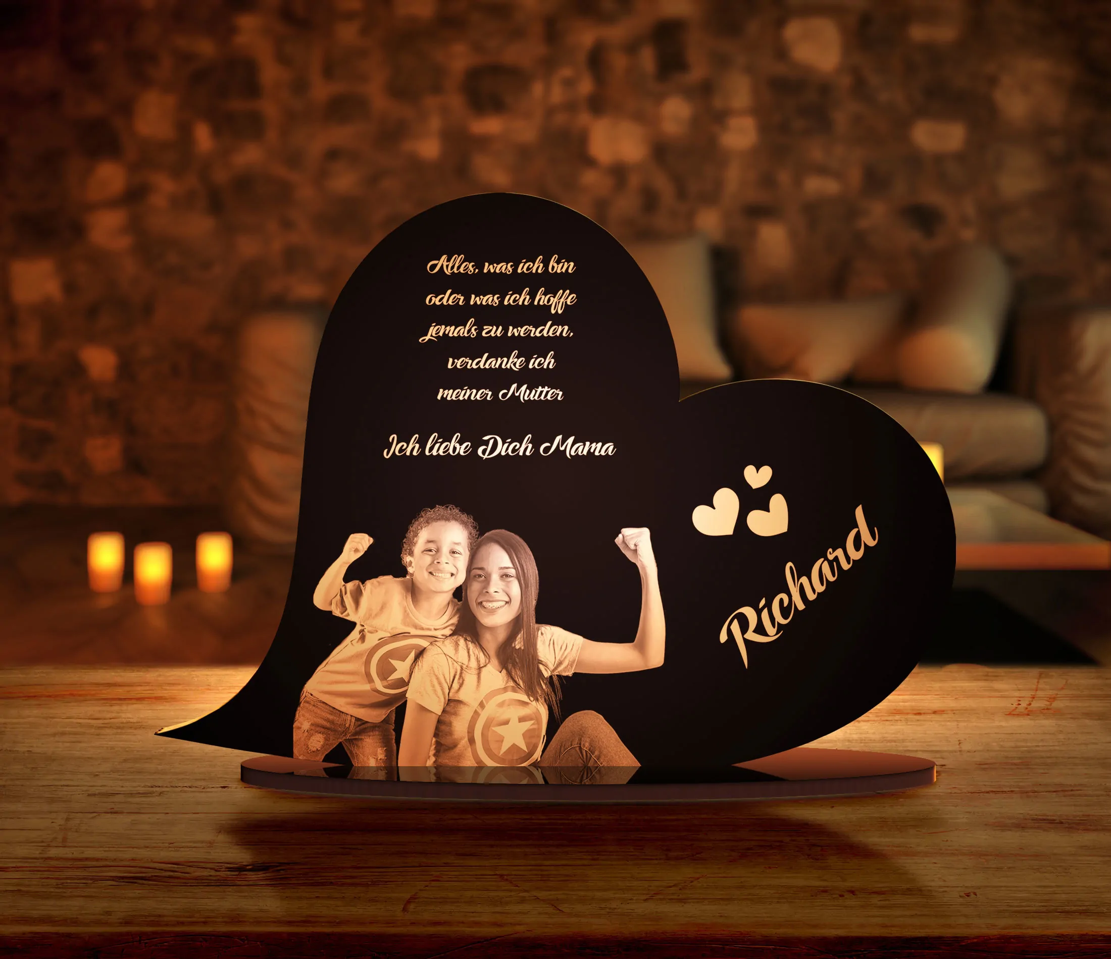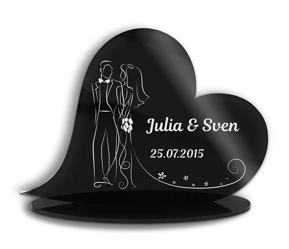 Egal, ob als dekorativer Liebesbeweis, als Zeichen inniger Freundschaft oder als unvergleichliches Erinnerungsstück – mit unseren Standherzen aus Hochglanz Acrylglas mit individueller Gravur triffst Du immer voll ins Schwarze. Die unschlagbare Qualität des bruchsicheren GS Acrylglases wird dich nicht nur mit ihrer glänzenden Optik, sondern auch durch ihre Robustheit überzeugen. Dank des besonderen Lasergravurverfahrens können wir für Dich auf das Dekoherz sogar ein persönliches Foto gravieren lassen. Damit gehören gewöhnliche Fotos im Bilderrahmen der Vergangenheit an. Durch die weiße, leicht durchsichtige Gravur kommt Dein Standherz besonders gut im Dunkeln zur Geltung, wenn Du dahinter eine Kerze anzündest und das edle Acrylglas mit Deiner Wunschgravur stimmungsvoll im Kerzenlicht scheint. Tipp: Die zeitlos schönen Acrylglas Herzen zum Aufstellen eignen sich aufgrund ihrer Personalisierung auch bestens als originelle und romantische Geschenkidee. Überrasche Deinen Partner mit diesem zauberhaften Standherz und einer süßen Widmung beispielsweise zum Jahres- oder Valentinstag oder verschenke ein personalisiertes Herz an andere zur Hochzeit oder auch zur Geburt.
