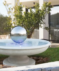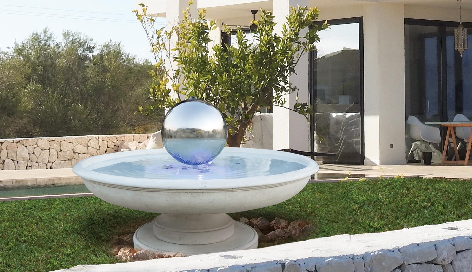 Im Lieferumfang sind eine Pumpentechnik, die Kugel und 3 RGB/LED-Scheinwerfer (Wechsellicht) mit Trafo und Fernbedienung enthalten.