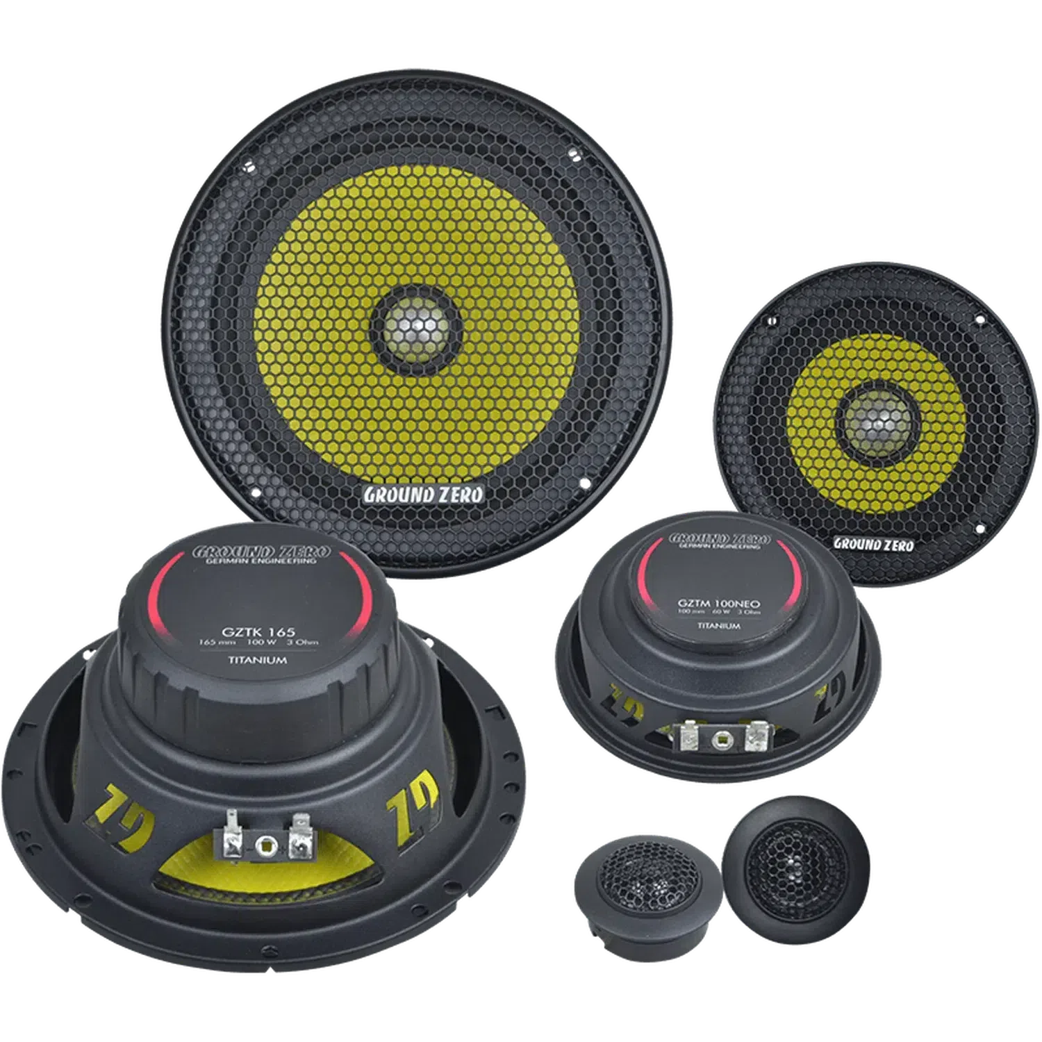 Entdecke mit dem Titanium GZTC 165.3X-Act von Ground Zero ein hochwertiges 6.5″ (16,5 cm) Lautsprecherset. Dieses 3-Wege Komponenten-Lautsprechersystem beeindruckt mit seiner HQPP-Membran, die durch eine 3D-Struktur hervorsticht. Die Gummisicke und der resonanzarme Stahlkorb sorgen für optimale Klangqualität. Dank Euro-DIN Einbaumaßen ist das Set einfach zu installieren und für den Aktivbetrieb ausgelegt. Der 19 mm Hochtöner mit Seidenkalotte und der robuste Ferrit Magnet tragen zu einem dynamischen Hörerlebnis bei. Inklusive Hexagon-Schutzgitter bietet diese Lösung nicht nur Leistung, sondern auch Schutz.
