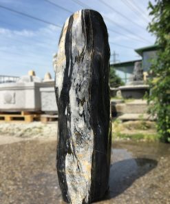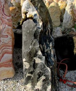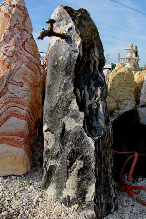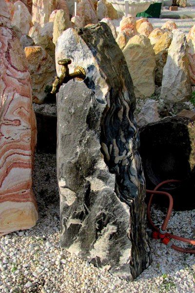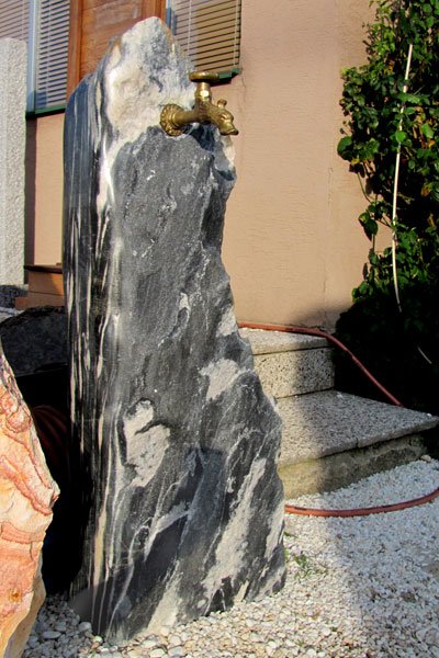 schwarzer, wetterfester Marmorstein, dicht verrohrt zum Anschluß an die Hauswasserleitung, als Wasserentnahmestelle in Ihrem Garten oder als Trinkwasser-Brunnen.