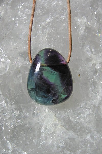 Wir bieten Ihnen hier einen wunderschönen, von Hand geschliffenen, Fluorit Anhänger in top Qualität.