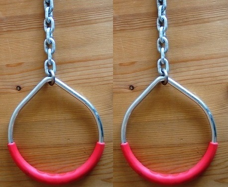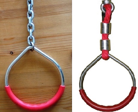 Diese hochwertigen Römischen Turnringe montagefertig konfektioniert mit verzinkten M 12 Ringmuttern und 20 cm Kettenaufhängungen sind eine preiswerte Profiausführung,