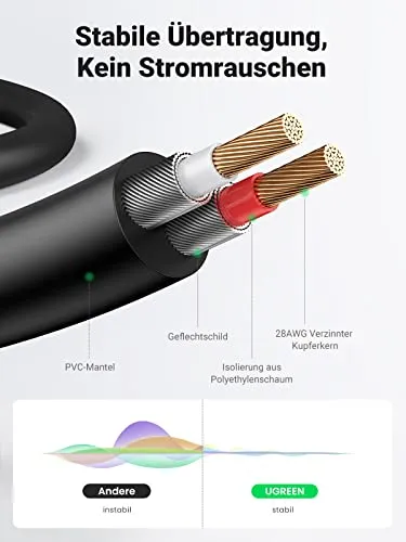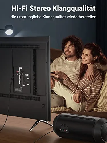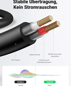 - Stabile Audio-Signalübertragung: Mehrere Abschirmschichten von UGREEN Klinke Chinch Kabel blockieren externe elektromagnetische Störungen, was gemeinsam für eine stabile und klare Audioübertragung sorgt, stellt Klangdetails wieder her und bietet ein Hörerlebnis auf HiFi-Niveau.