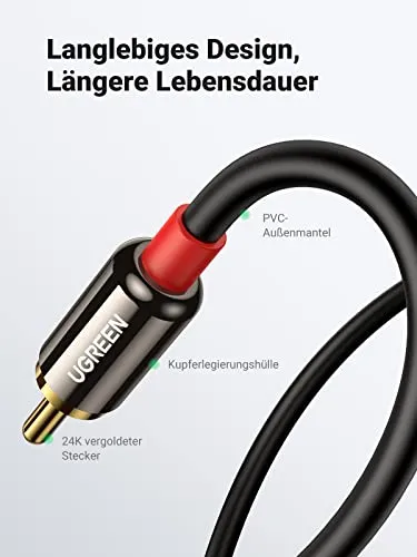 UGREEN Klinke auf Cinch Kabel 3,5mm Klinke Chinch Stereo Audio Kabel für TV, PC, Handy, MP3-Player, Lautsprecher, Heimkino, Autoradio, Tablet, Verstärker, Soundbar usw.