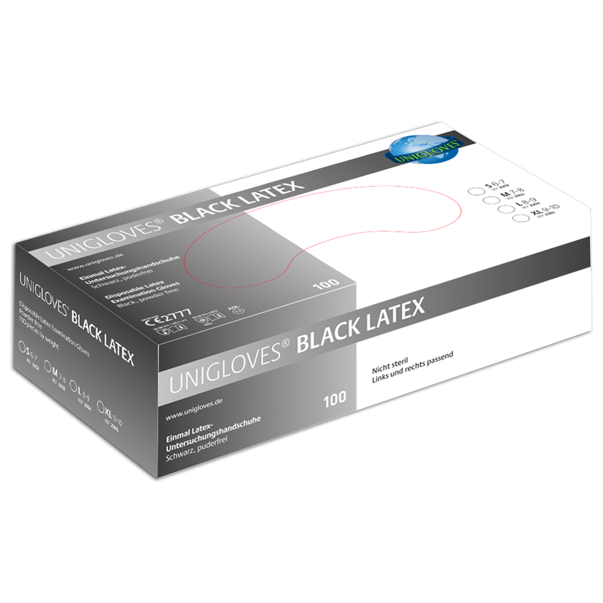 Unigloves Black Latex, Latexhandschuhe, Schwarz, Puderfrei, 100 Stück