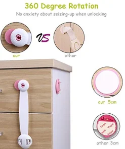 - Das Kinderschrankschloss besteht aus ungiftigem ABS-Material ohne Zusatzstoffe. Freundlich für Kinder und Haustiere.