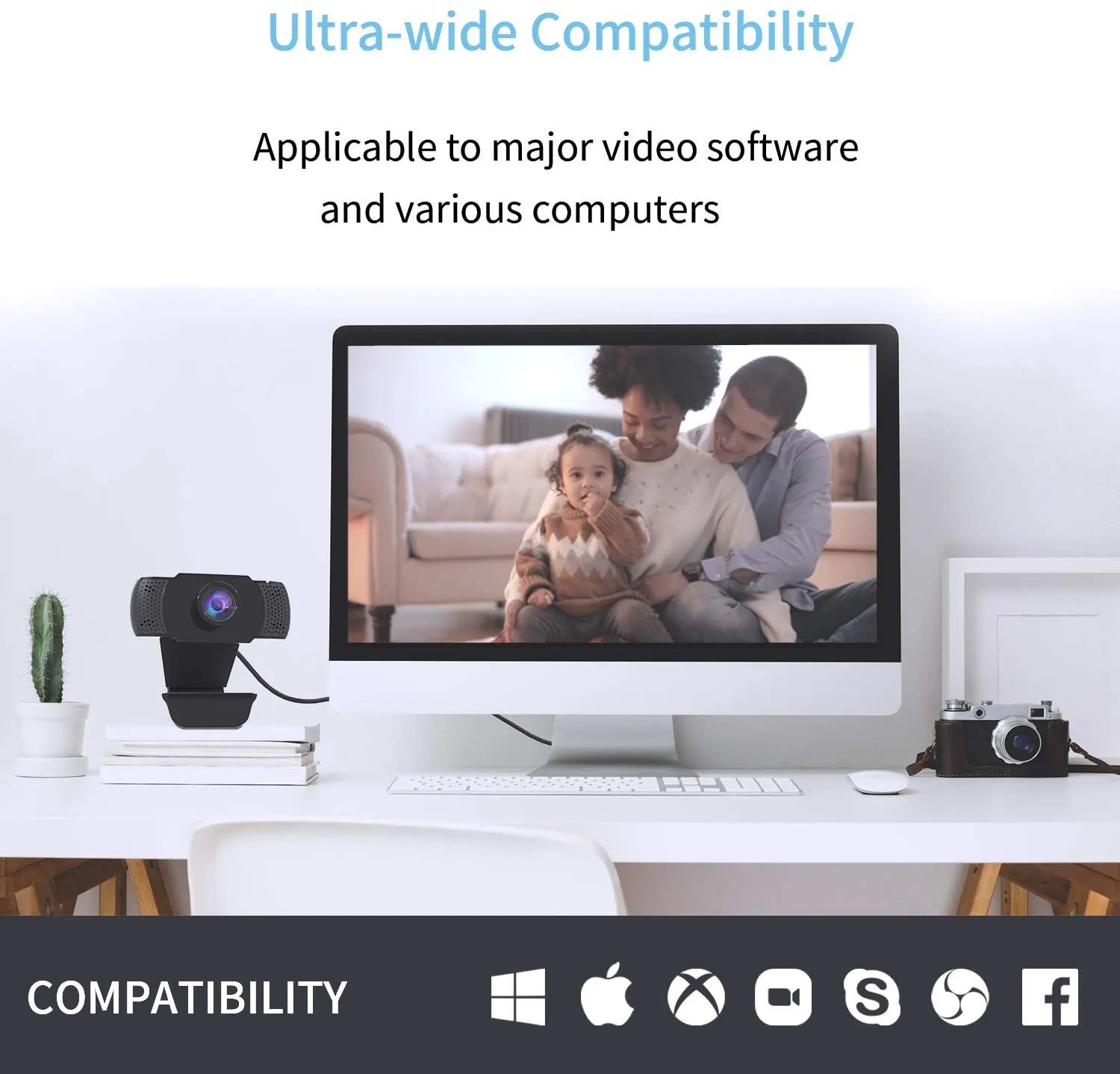 • Unterstützt mehrere Video-Softwares, die Webcam kann mit den aktuellen beliebten Video-/Meeting-Software kompatibel sein.