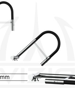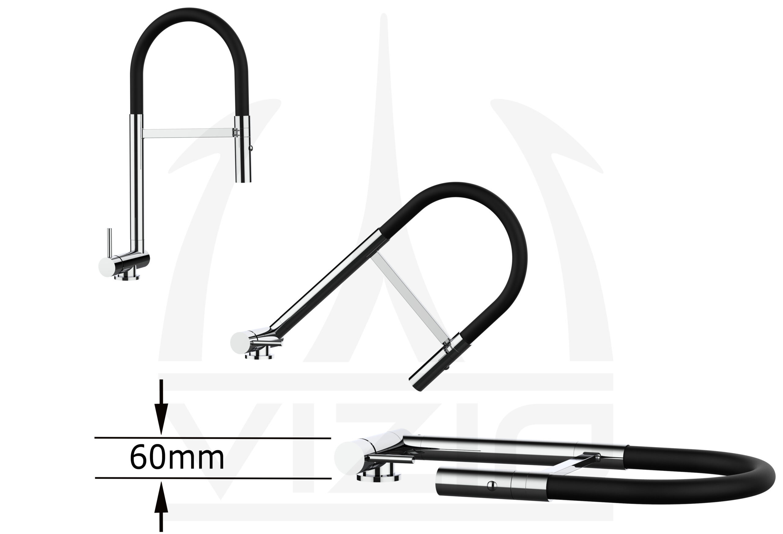Wasserhahn Vorfenster, Umklappbar 6 CM, Verchromt Küchenarmatur mit 360° schwenkbarem Auslauf abnehmbare 2 strahl Handbrause, Flex-Schlauch oben in Schwarz, LINKER HEBEL