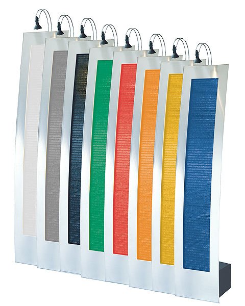 Gegen Aufpreis (€ 15,90) erhältliche Lammellenfarben: rot, gelb, orange, schwarz, weiss