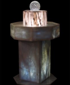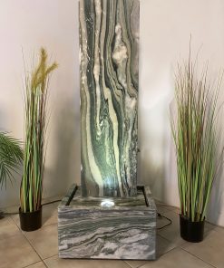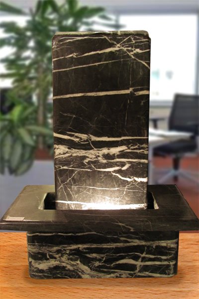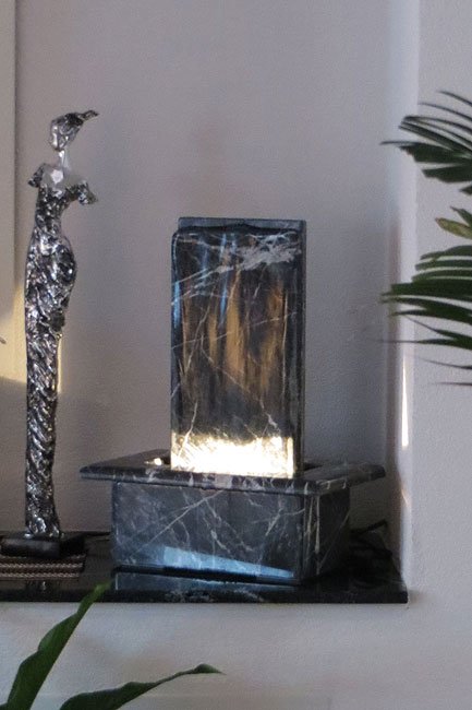 Wunderschöner Marmor-Wasserwand-Brunnen für den Tisch oder die Anrichte. Durch die integrierte Beleuchtung wird das Wasser regelrecht zum Leben erweckt.
