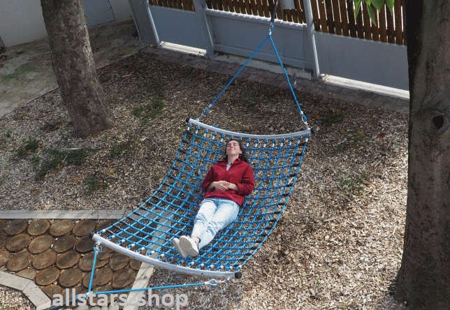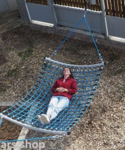 Die Liegefläche und die Aufhängeseile sind aus robustem Herkulesseil. Außerdem verfügt die XXL-Hängematte über einen Überschlagschutz.