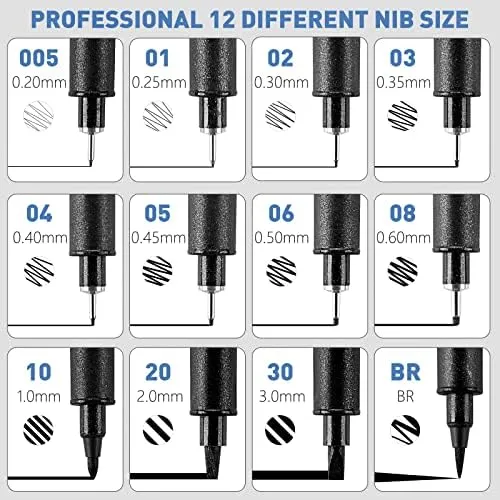 - 🖊️ Vielseitige Strichstärken – Von 0,2 mm bis 3,0 mm & Brush für feine bis kräftige Linien